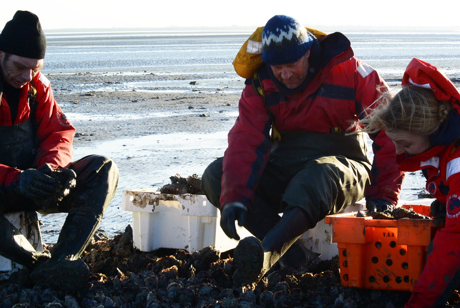 De naam zegt het al: vissen op de juiste manier met respect voor onze planeet. Dat doen Jan & Barbara al jaren rondom Lauwersoog. Ze zien eruit als oer Hollanders; prachtige koppen die op de goede manier zijn getekend door zee en kou. Ze praten hard en gedreven over hun vak en het behoud van de natuur hier op deze absolute droomlocatie. Terwijl wij op hun grote rubberen boot wegvaren uit de haven realiseer ik me wat een voorrecht het is om te mogen doen wat ik doe. Dit soort mensen, bezeten van hun vak, laten ons zien dat kleinheid groots is. Een paar keer per week varen ze uit, zoals wij dat nu ook doen, naar de Engelandplaat die een paar uur per dag droog komt te liggen waardoor duizenden oesters voor het rapen liggen. We praten over verleden, heden en toekomst van de visserij terwijl we bij een laaghangende parelende zon op het wad een paar oesters nuttigen met een glas rosé bubbels, aaaaaaaaaahhhhhhhh!