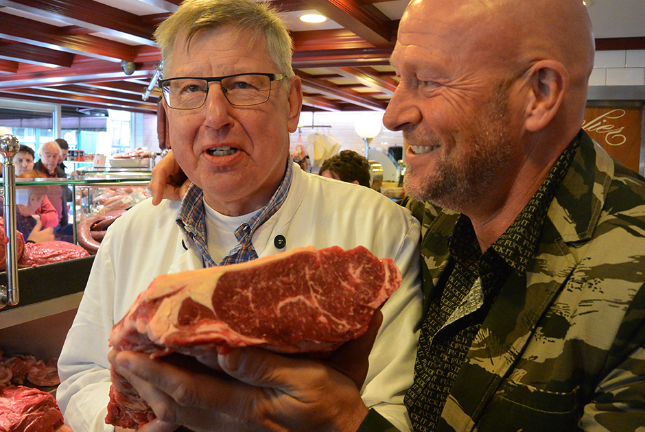 Frans kent al zijn leveranciers die zijn filosofie delen. De karkassen worden hier nog ’s morgens vroeg aangeleverd en helemaal uitgebeend en verwerkt tot bijvoorbeeld Amsterdamse ossenworst. Al jaren is het mijn wens om hier te draaien omdat ik het wil delen met iedereen die kwaliteit waardeert en er wellicht jonge slagers mee kan inspireren. Want deze zaak bewijst dat goed geld verdiend kan worden zonder concessies te doen in kwaliteit. Het gaat de consument dus niet alleen om de portemonnee, en het mooie in deze slagerij is dat ‘iedereen’ er komt; jong & oud, arm & rijk, en er ook voor iedere portemonnee iets te vinden is.