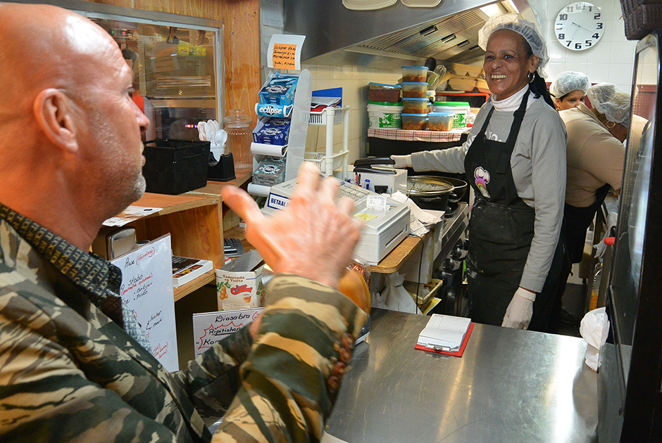 Gesitueerd in een oude parkeergarage, een ietwat tochtige betonnen bak kan je proeven van met het hart bereide specialiteiten. Ik kan hier echt blijven proeven maar dan wordt het zo decadent. Dus ‘beperk’ ik me tot een pindasoep, mooi gebalanceerd, licht pikant, van echte bouillon, een Armeense wrap met pikant lamsvlees, knapperig groen en yoghurt-munt saus, ‘Johnnycakes’, mild zoete, donutachtige broodjes gevuld met bacalao en natuurlijk kip van de houtskoolgrill, gegrild precies zoals dat hoort. In euforie sluit ik af: ‘Wat een feest, I will be back here!’ En zo zal het zijn!